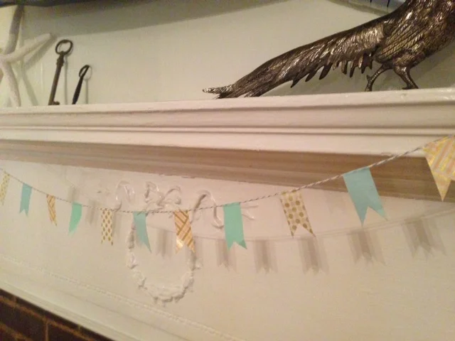 I purchased Japanese masking tape at a boutique in Maine last summer and have been putting it all over my stationary ever since. I also made a flag banner with baker's twine, which now hangs from my mantel. So simply and pretty for spring!