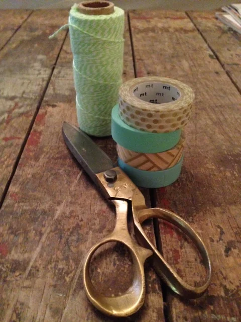 All you need is baker's twine, scissors and your favorite Japanese washi tape. You you can find it easily online, the only difficult part is choosing from several colors and patterns.